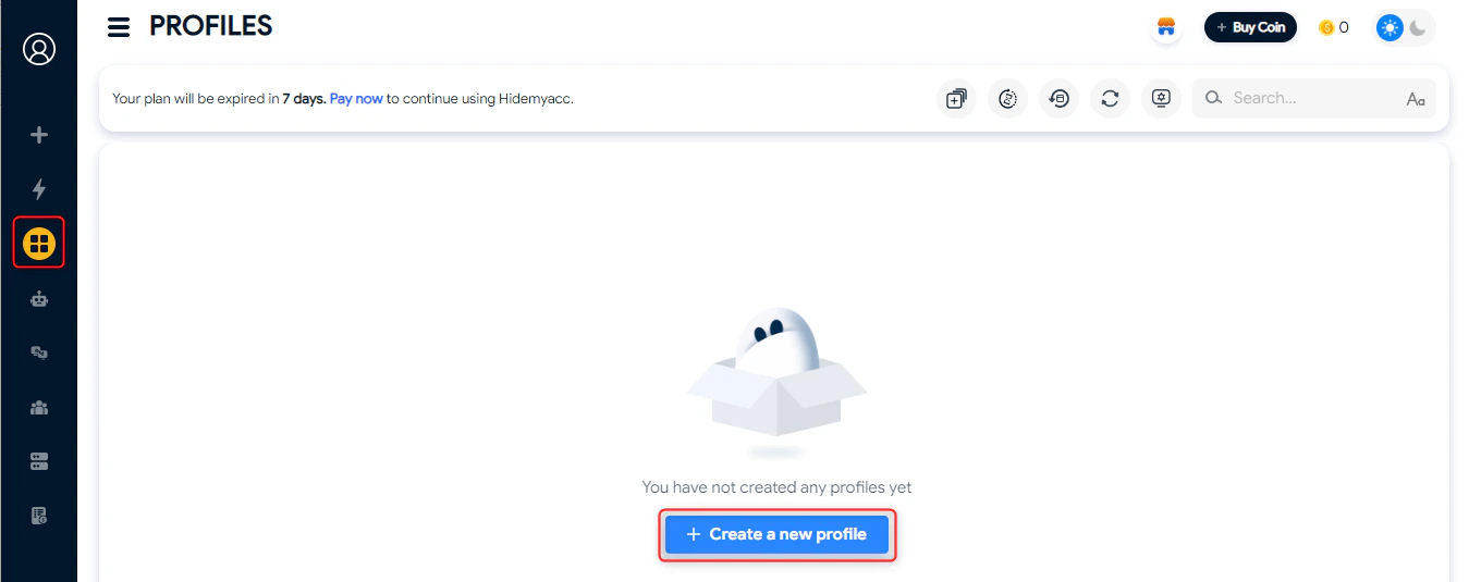 1. 打开 HideMyAcc,导航到 Profiles(配置文件)选项卡。