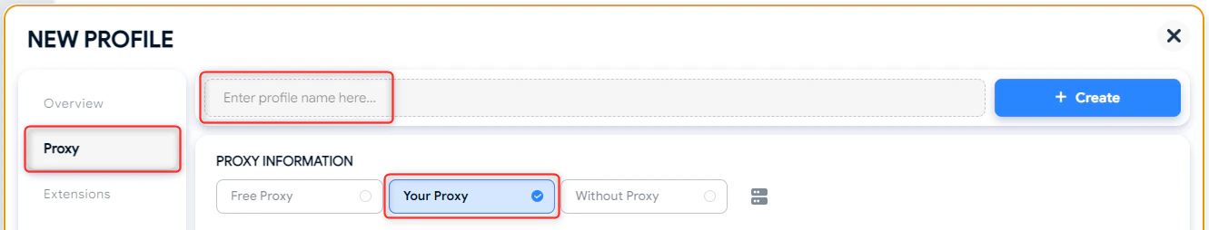 5. 代理配置验证成功后,点击 Create(创建)以保存代理设置。