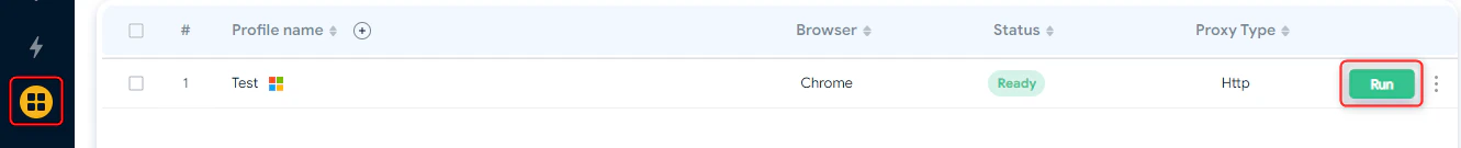 导航到 Profiles 选项卡,选择刚创建的配置文件,然后点击 Run(运行)以使用 Bright Data 进行安全浏览。