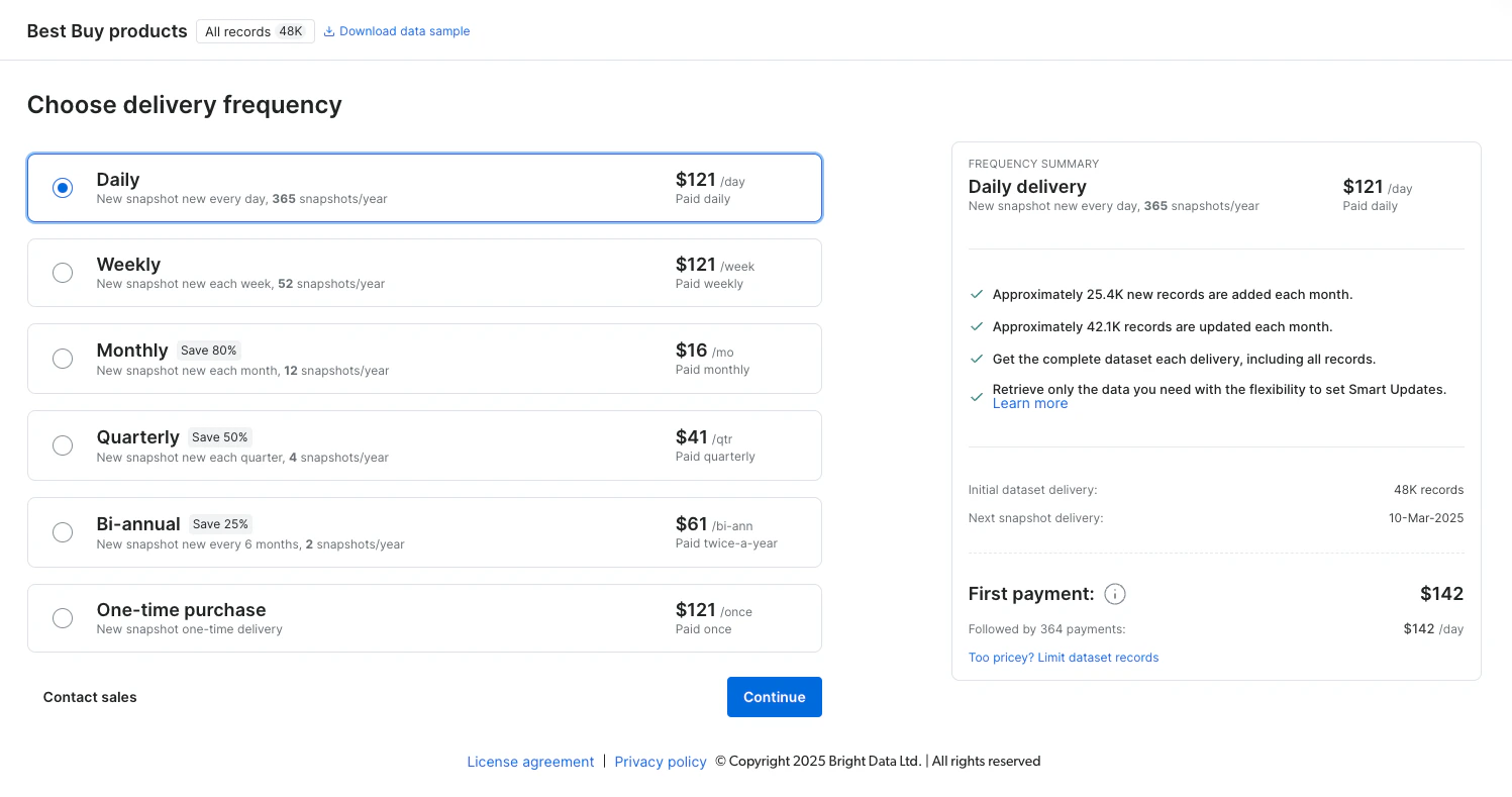You can now get daily or weekly updates for 41 out of 73 eCommerce datasets. This makes it easier to track new products in a category or monitor price changes more frequently. We’re working on adding support for more datasets soon!