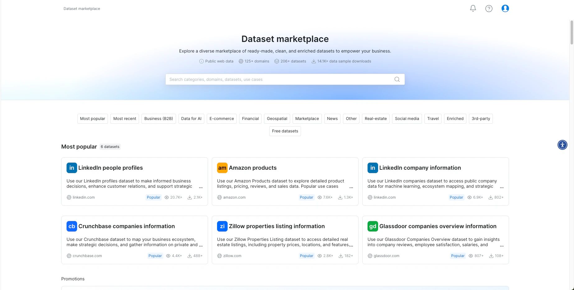 Redesigned Marketplace UI – We’ve refreshed the header, category list, and dataset cards grid to make browsing easier.