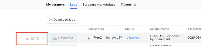 - Cancel snapshot from the No-Code Scraper – Users can now cancel a running snapshot directly from the No-Code Scraper interface.