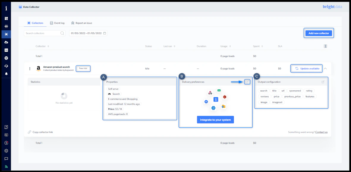 - Initiate manually - Bright Data’s control panel makes it easy to get started collecting data